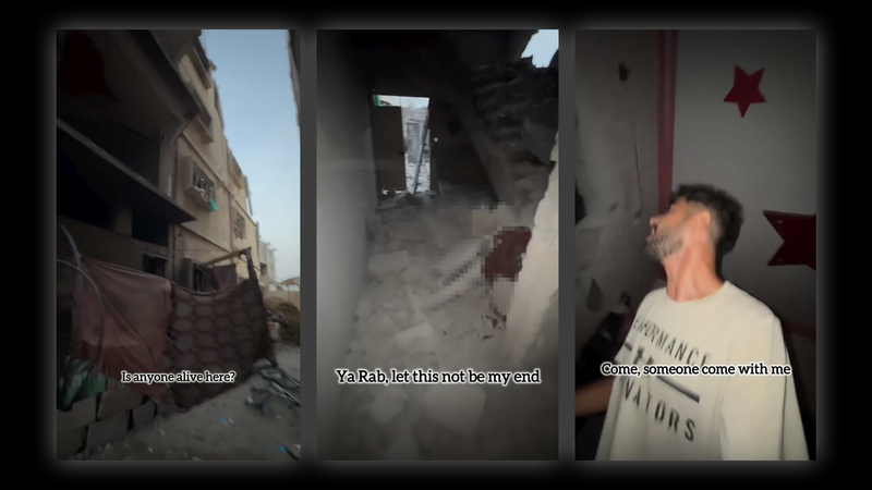 Gaza civil defense worker Nooh al-Shaghnobi filmed himself as he entered a building following an Israeli attack, to look for survivors, in August 2025.